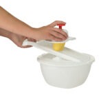 Umożliwia sprawne cięcie owoców i warzyw bezpośrednio do miski. Dzięki hermetycznej pokrywie utrzymuje świeżą żywność przez długi czas. Pozwala to na dobre zarządzanie codzienną dietą.