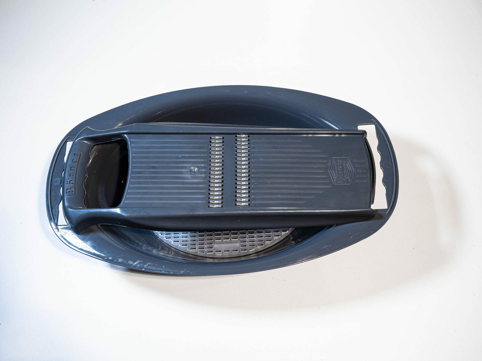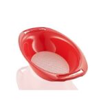 Dodatkowa jej zaleta to wewnętrzne sitko, które odseparowuje nadmiar wody lub soku z tartych warzyw i owoców.