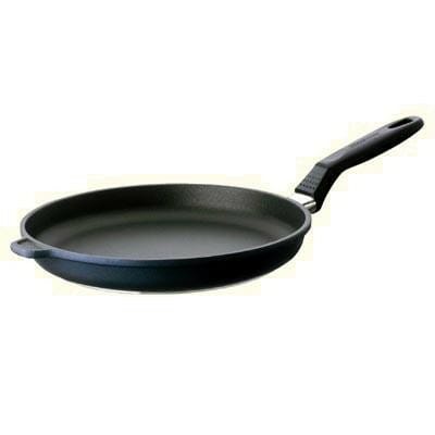 Dno patelni o grubości 8-10 mm rozprowadza temperaturę równomiernie. Potrawy są jednakowo zrumienione na środku jak również na obrzeżach patelni. Niski 3 centymetrowy rant patelni pozwala w łatwy sposób zsuwać smażone produkty: naleśniki, jajka…