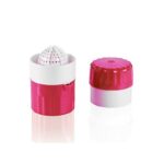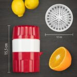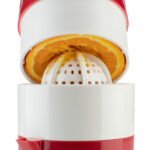 Weźmy na przykład pomarańczę. Umieszczamy połowę owocu w uchwycie, nakładamy na wyciskarkę, kilkukrotnie kręcimy uchwytem jednocześnie dociskając go – i gotowe!