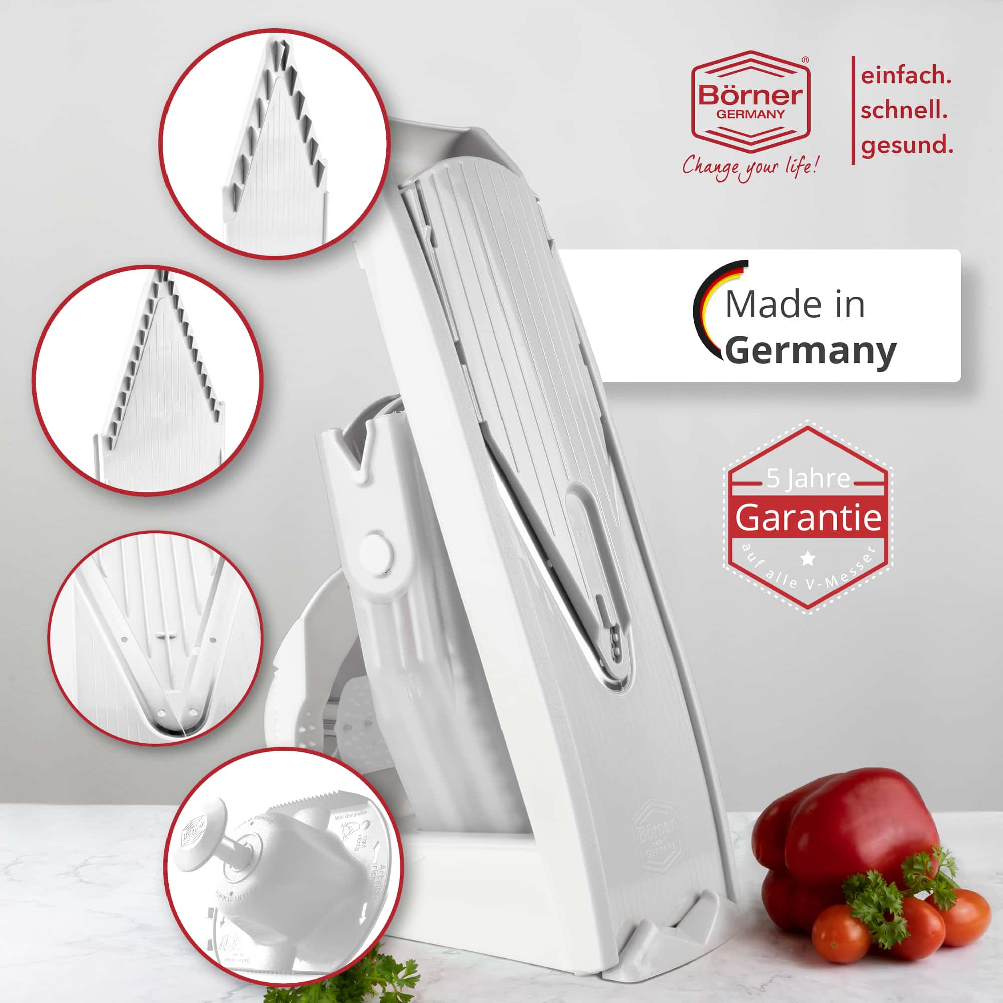 Dzięki opatentowanej technologii noża V wszystkie modele Szatkownic Hebli wykonane są z najwyższej jakości stali i pozostają ostre przez cały okres właściwego użytkowania. Nie można ich drugi raz naostrzyć !!!