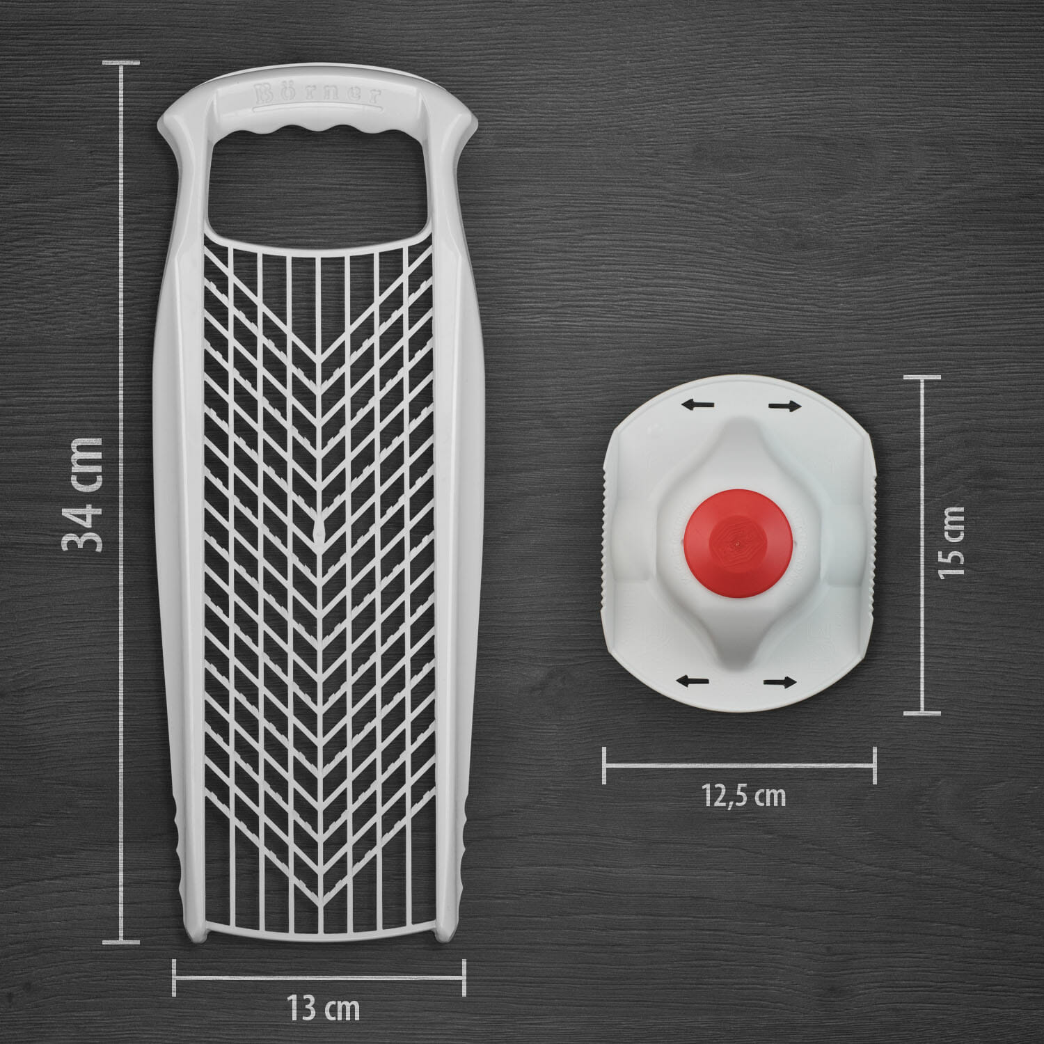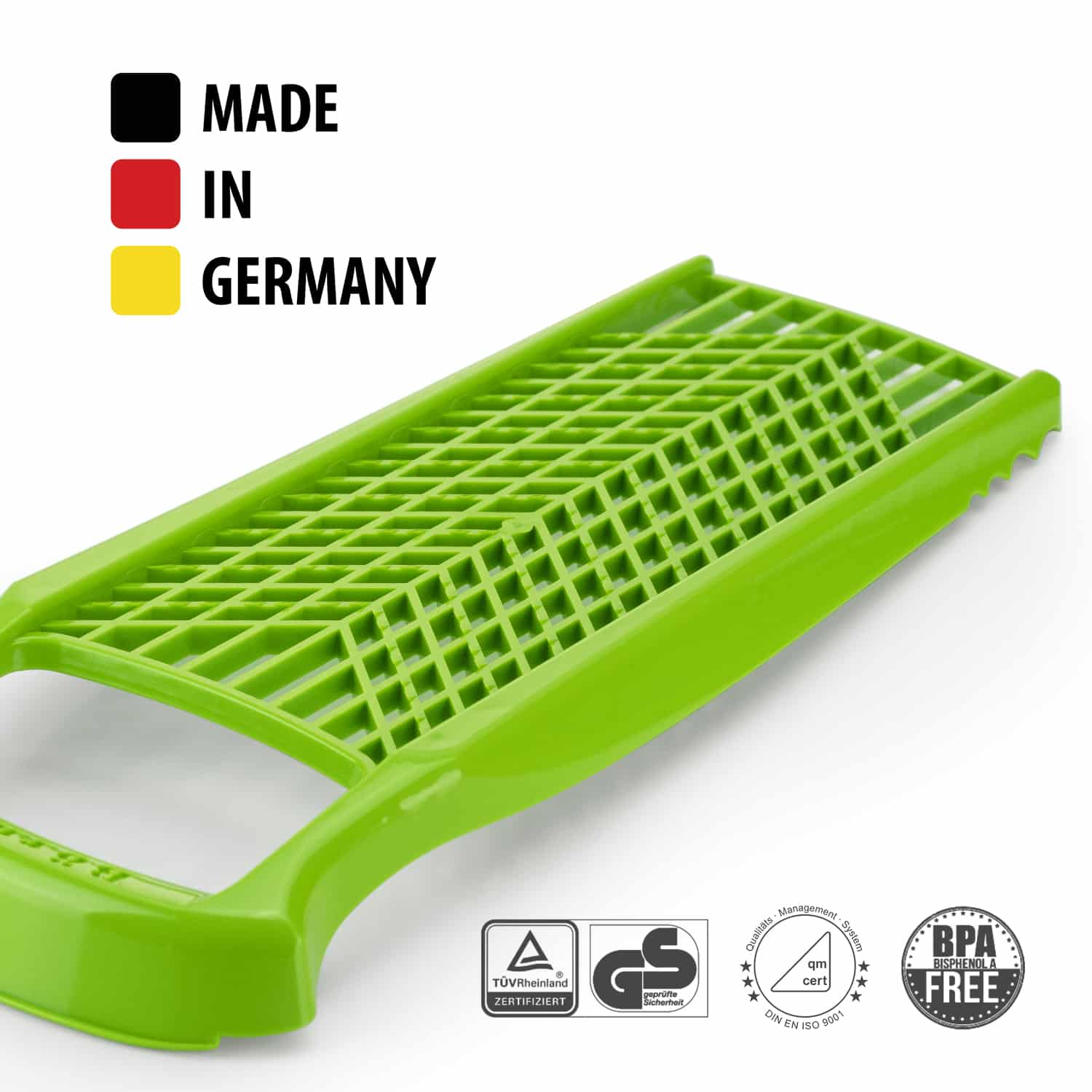 Tarka do warzyw i owoców REIBE POWER LINE jest idealna do tarcia przecierowego. Najlepsza na świecie tarka do starcia ziemniaków na placki ziemniaczane, jabłka do szarlotki, czekolady na wiórki, imbiru itp. Ponadto duża powierzchnia trąca w kształcie litery V ułatwia pracę. Tarka do warzyw i owoców to najlepszy sposób na uzyskanie zamierzonego efektu w kuchni.