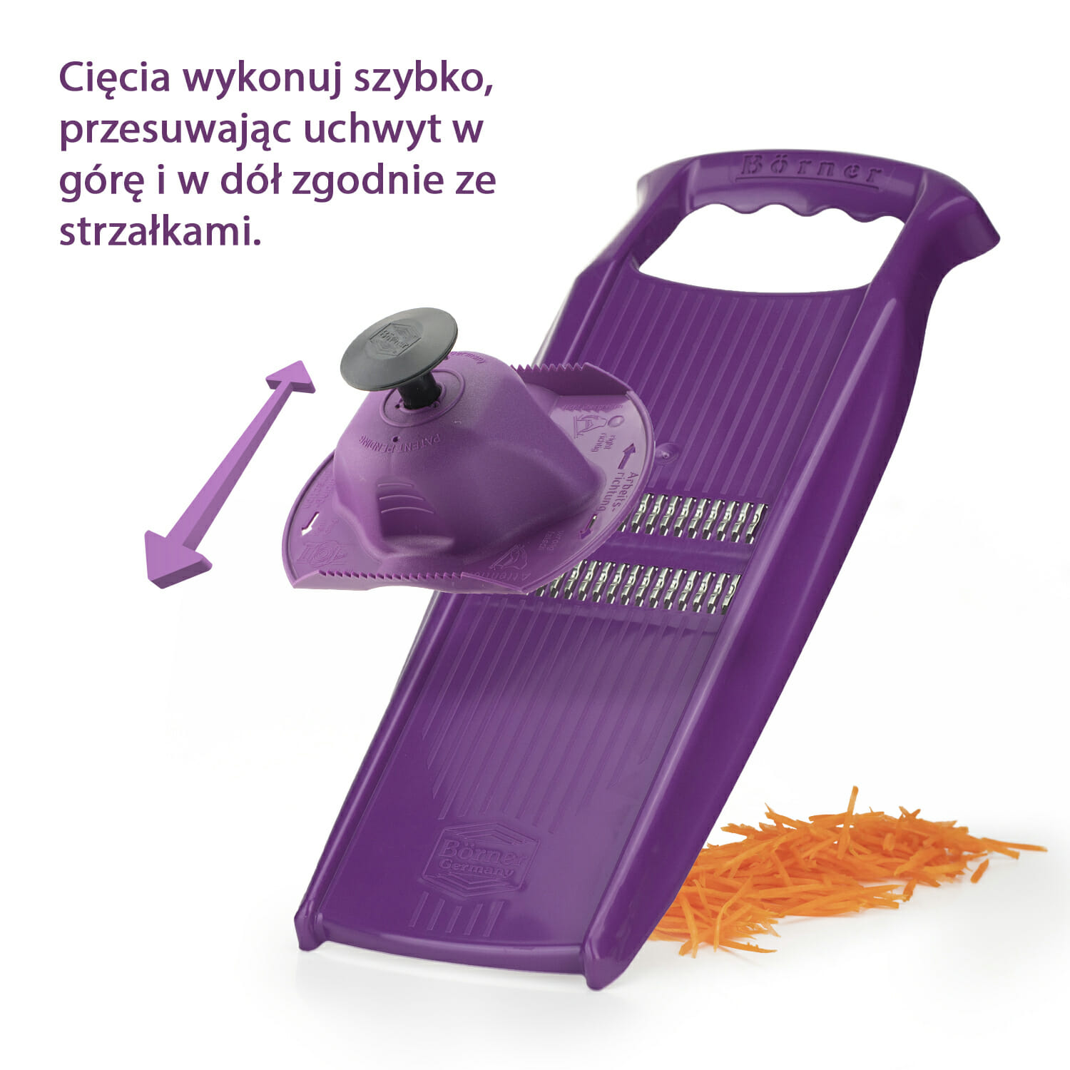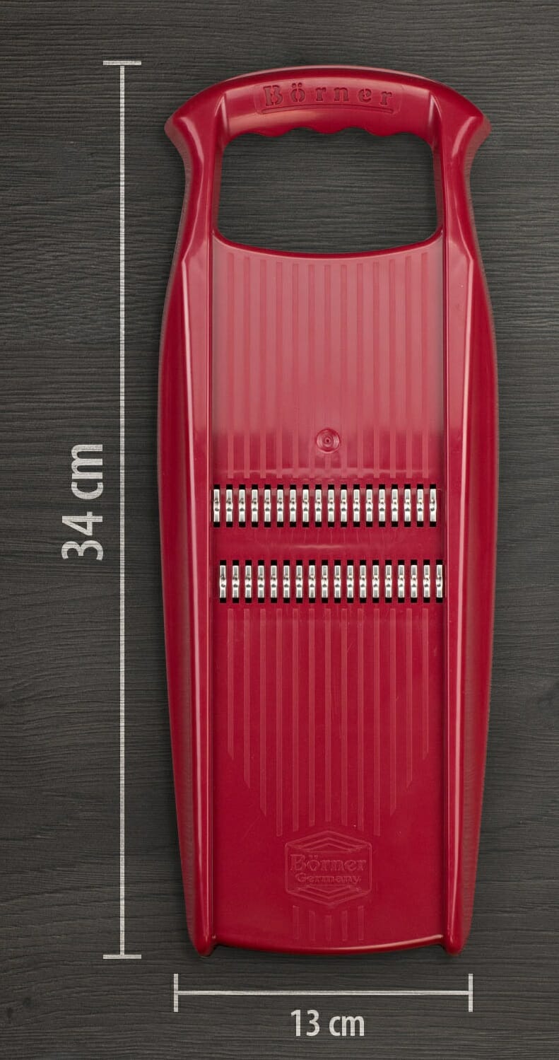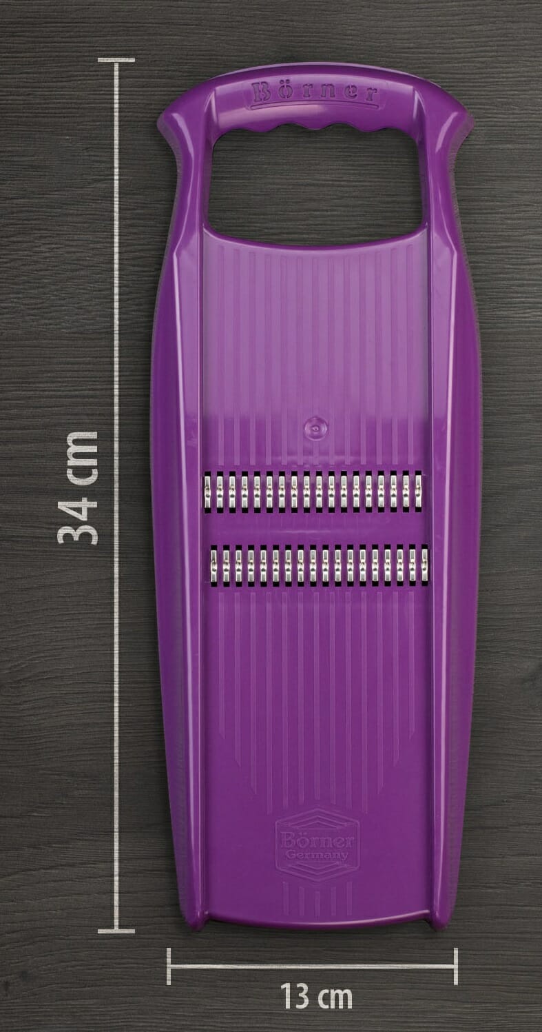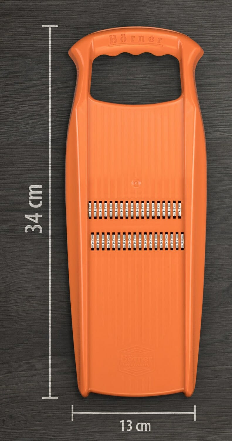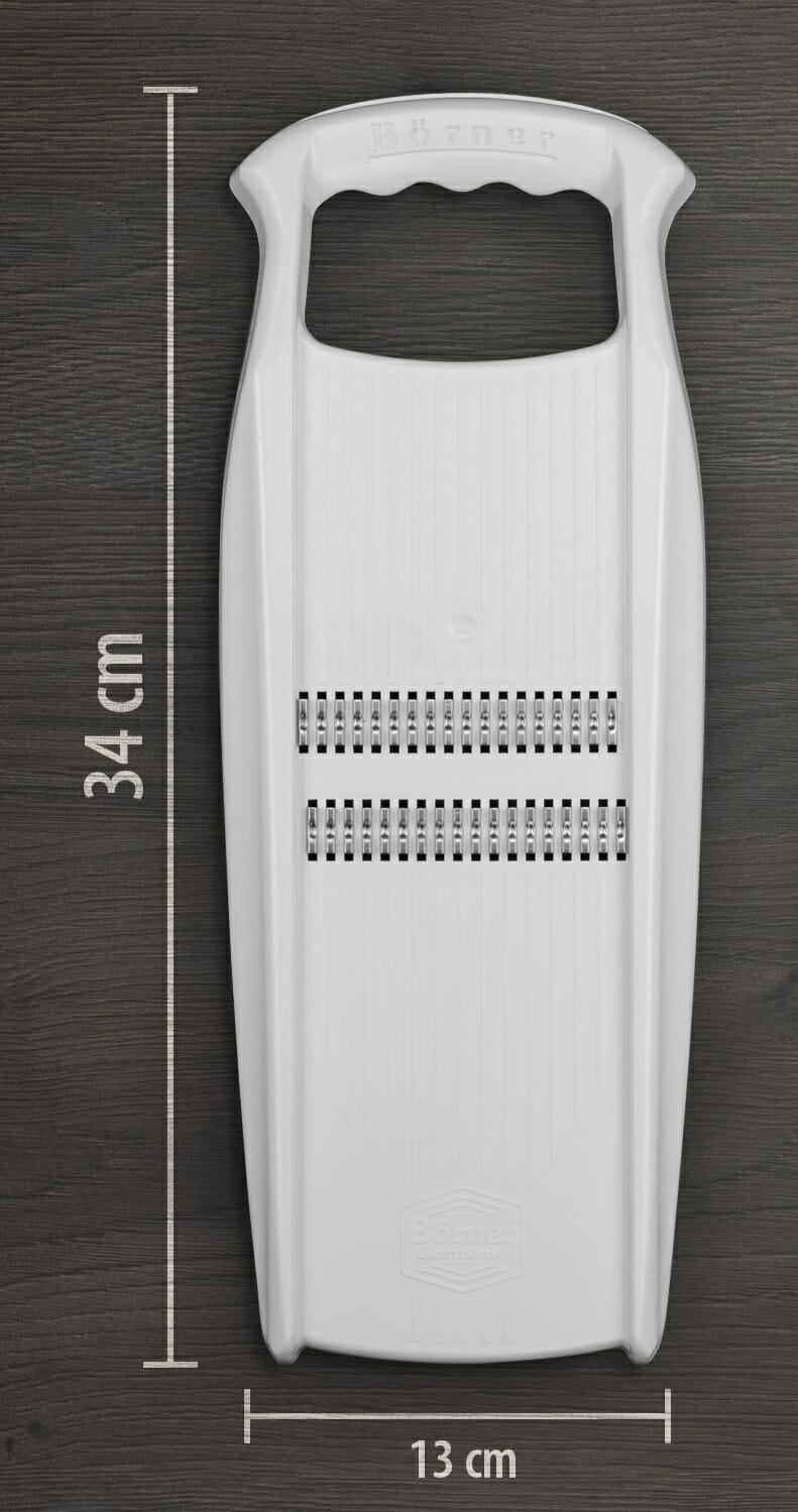 Z tarką ROKO pokroisz zarówno twarde warzywa korzeniowe, takie jak marchew, seler, pasternak czy kalarepa, jak i miękkie owoce. Ostre i doskonale wyprofilowane noże gładko rozdrobnią warzywa bez efektu poszarpania. Ponadto szlifowane obustronnie ostrza umożliwiają cięcie w obu kierunkach, co pozwala na pokrojenie dużej ilości warzyw w bardzo krótkim czasie.