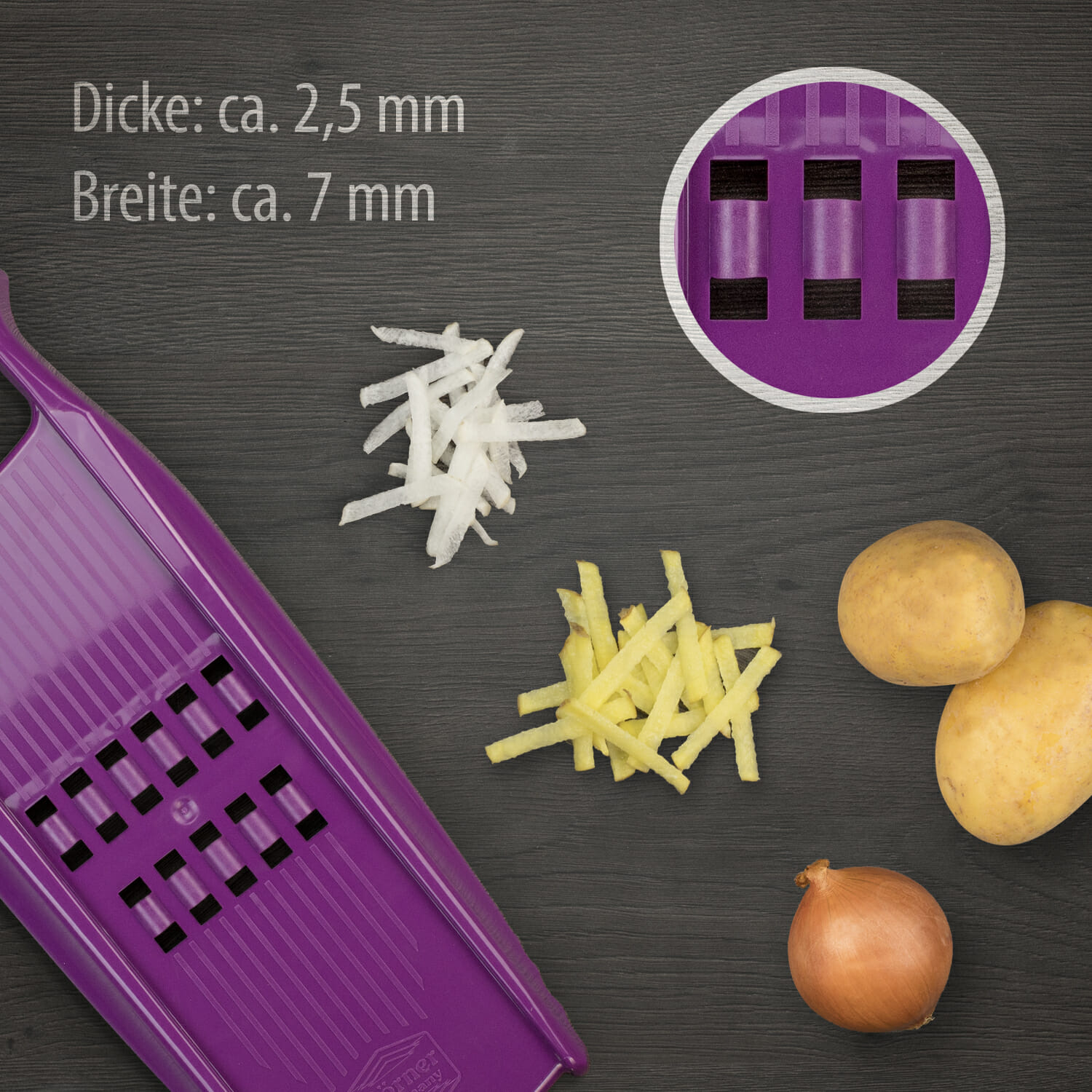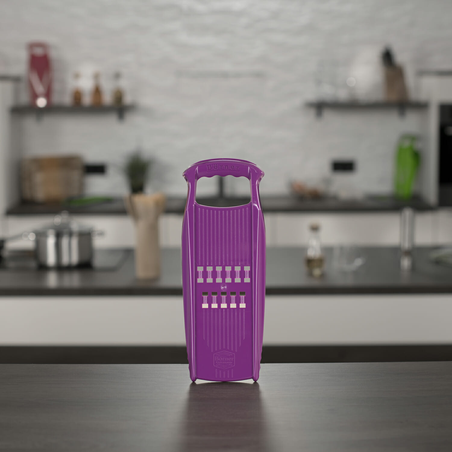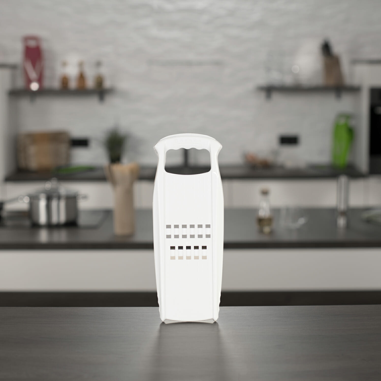 W całości wykonana z tworzywa, jednak bez problemu możesz zetrzeć na niej nawet najtwardsze warzywa takie jak seler. Tarka służy do krojenia warzyw i owoców na wióry średniej grubości, np. warzywa do zupy, jabłka na szarlotkę. Świetnie nadaję się również do tarcia sera na pizzę czy zapiekanki.