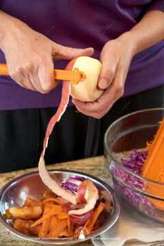 - Tak równiutkie plasterki pomidora, truskawek i brzoskwini oraz kosteczki cebuli uzyskałam w mgnieniu oka, dzięki znakomitej szatkownicy V-HEBEL BÖRNER.